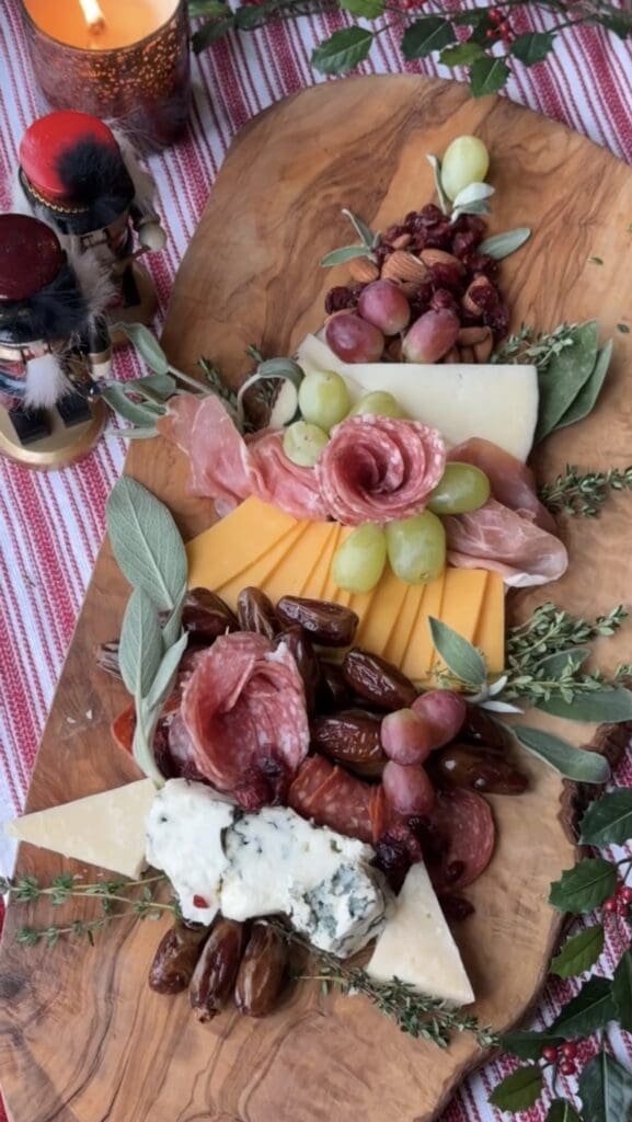 There’s something magical about presenting a charcuterie board that doubles as a holiday centerpiece, and shaping your ingredients into a Christmas tree is one of the easiest ways to make your party table unforgettable. With seasonal colors, savory flavors, and playful touches, this festive board highlights cranberries, almonds, grapes, Parmesan, blue cheese, salami, and prosciutto while looking almost too pretty to eat. It’s a charming combination of creativity and crowd-pleasing flavors that instantly elevates your holiday hosting.